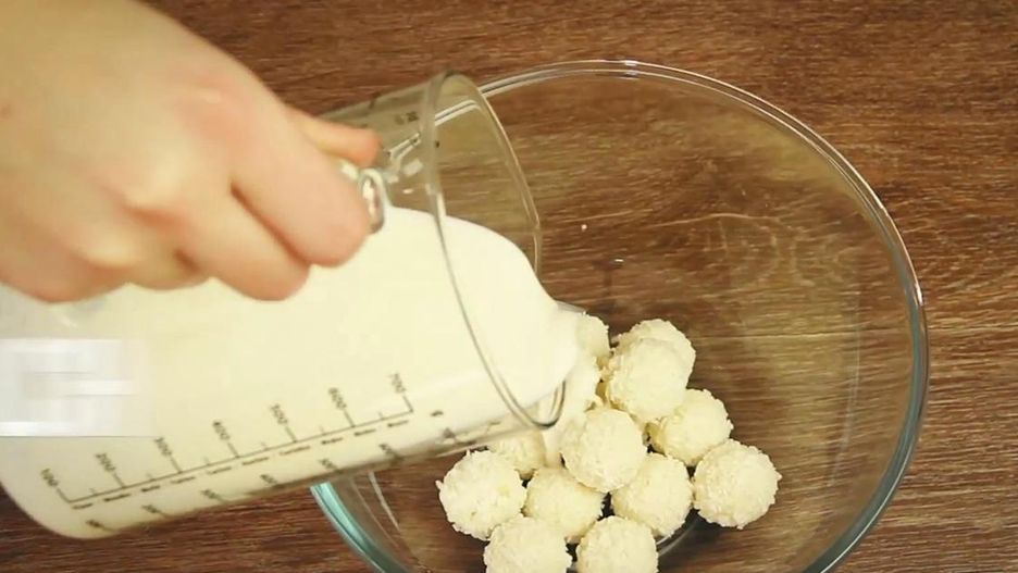 Zalała Raffaello mlekiem i całość zmiksowała uzyskując jednolitą konsystencję. Idealne na wieczór!