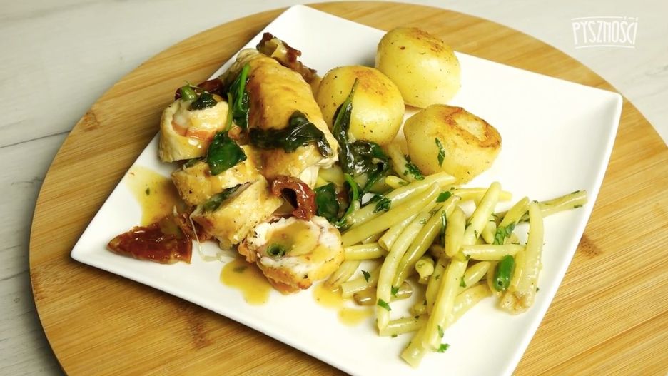 Drobiowe roladki z szynką parmeńską i fasolką szparagową