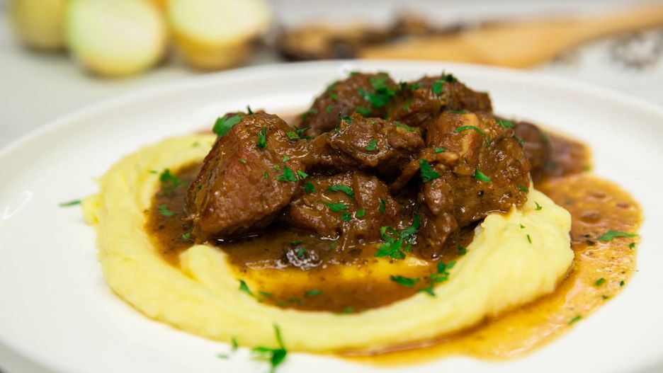 Na koniec wystarczy połączyć duszoną łopatkę w sosie cebulowym z ziemniaczanym puree. Całość udekoruj drobno posiekaną pietruszką. Smacznego!