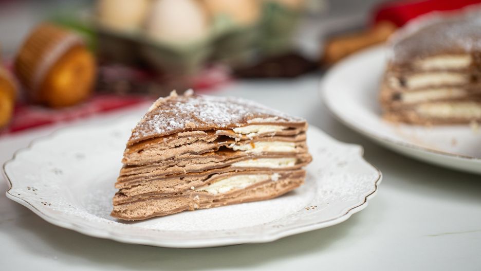 Śmietankowo-czekoladowy tort naleśnikowy zachwyca zarówno smakiem, jak i wyglądem