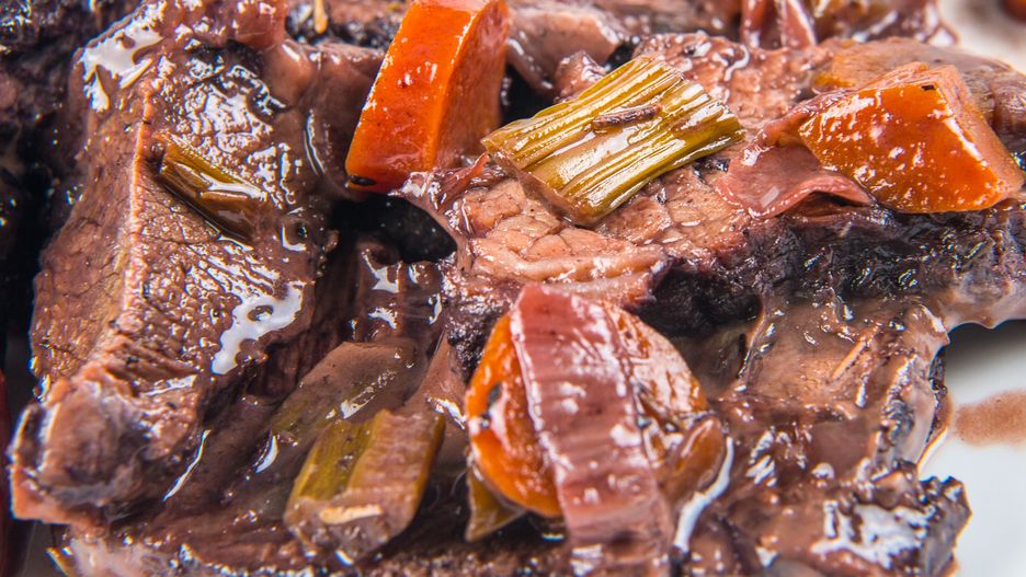 - Duś na bardzo małym ogniu przez około 2,5–3 godziny, aż mięso będzie rozpływać się w ustach.