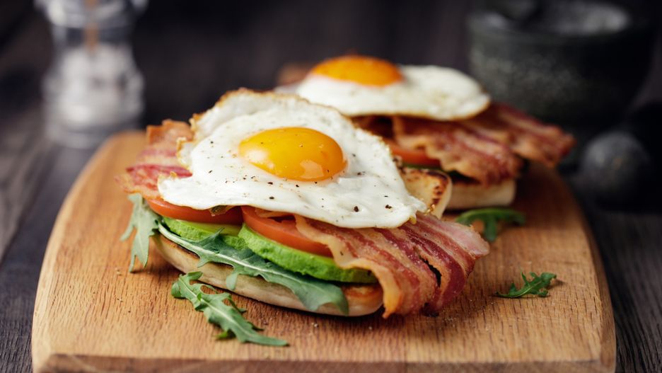 - Smażone plastry mortadeli pod wpływem ciepła wyginają się, tworząc "miseczki". W te wgłębienia wlej po jednym surowym jajku, a wierzch posyp pieprzem i solą.