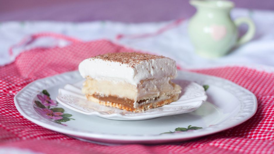 Przepis jest dziecinnie prosty. Wystarczy, że wyciągniesz formę do pieczenia, a na dnie rozłożysz herbatniki. Na herbatniki rozlewa się kajmak i rozkoszny krem budyniowy o wyjątkowej konsystencji. Wierzch dekoruje się bitą śmietaną, jednak możesz zastąpić ją rozpuszczoną czekoladą. To jeden z tych przepisów, który sprawdzi się w trakcie niezapowiedzianej wizyty gości.