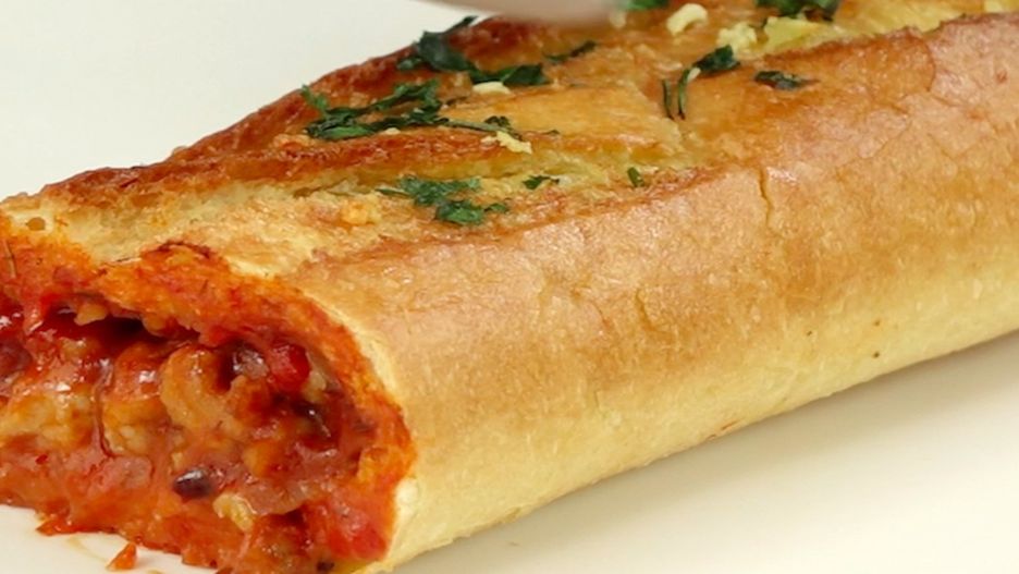 Bagietka faszerowana pysznym farszem z mięsa mielonego