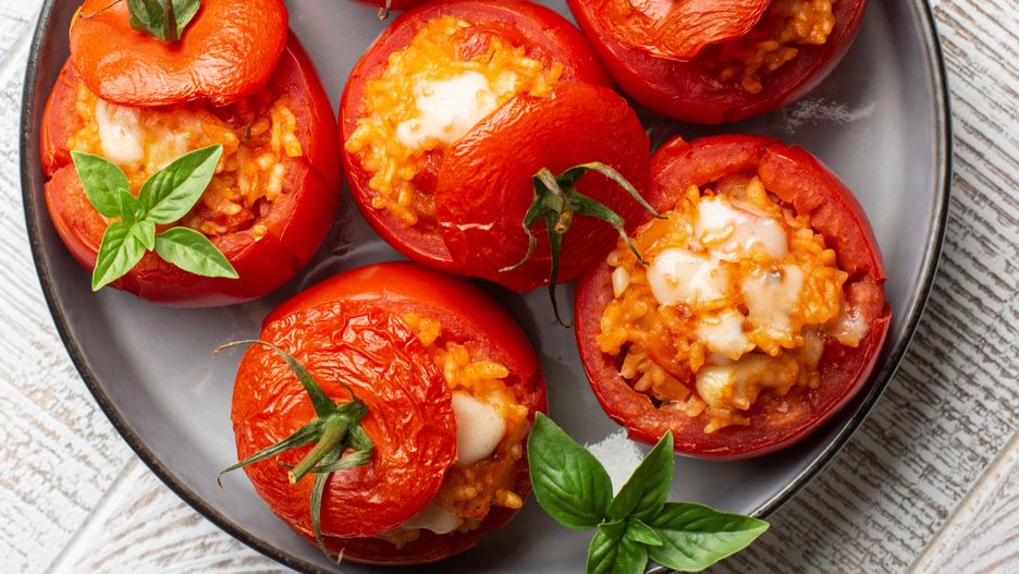Faszerowane pomidory nie muszą być przygotowywane na specjalne okazje. Kiedy wyszedłem z tego założenia, nagle komponowanie obiadu dla całej rodziny stało się prostsze. Co jakiś czas wcielam ten niecny plan w życie — wykrawam środek warzyw, nadziewam go farszem i zapiekam. To działa!