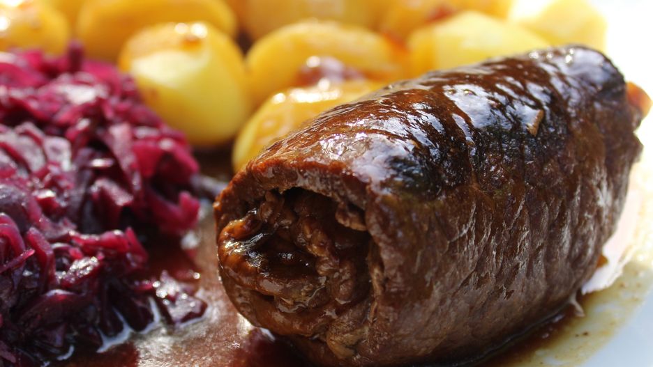 Składniki farszu różnią się w zależności od regionu, ale najczęściej to boczek, ogórek, kiełbasa, cebula, chleb. W moim przepisie również jest wędzony boczek i ogórek kiszony. Obsmażone roladki wołowe wymagają dość długiego duszenia. Miękną po około 2 godzinach, ale sporo tu zależy od jakości. Do roladek wołowych idealny jest ciemny sos na bazie sosu własnego, który powstał w czasie duszenia roladek oraz czerwonego wina.