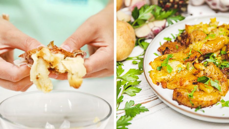 Ziemniaki nieprzerwanie darzymy ogromną miłością. Wyczarować z nimi można prawdziwe cuda na talerzu. Nie znamy nikogo, kto deklarowałby niechęć do tego warzywa. Dziś mamy dla Ciebie nieco nietypową odsłonę tych bulw. Tym razem nie wystąpią w formie zapiekanki, puree ani frytek. Rozgniecione ziemniaki z dodatkiem czosnku, masła i ziół sprawią, że na sam widok pocieknie Ci ślinka. Świetnie sprawdzą się jako chrupiący dodatek lub samodzielne, błyskawiczne danie. To też świetny sposób na wykorzystanie ziemniaków, które zostały z poprzedniego dnia.