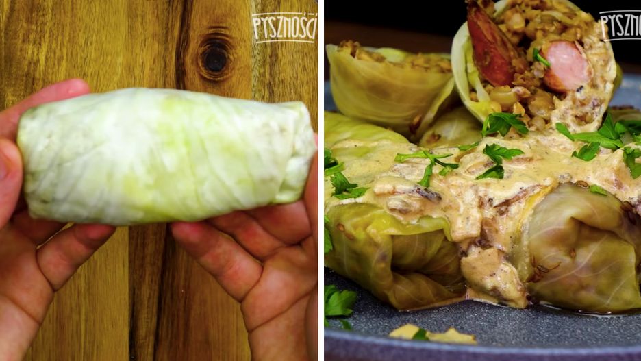 Oto kolejny pomysł na pyszne gołąbki. Tym razem ukryliśmy w nich kaszę oraz kiełbaski!