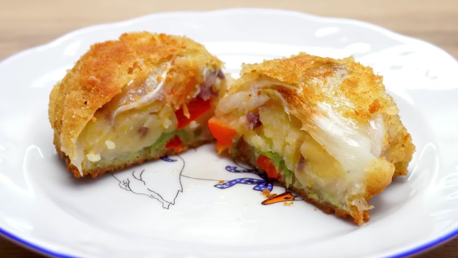 Wykrój z papryk gniazda nasienne i posiekaj warzywo w kostkę. Dorzuć do składników na patelni. Dopraw dwiema szczyptami soli. Ziemniaki odcedź, rozgnieć i połącz z usmażoną cebulą, papryką i chilli. Wymieszaj.