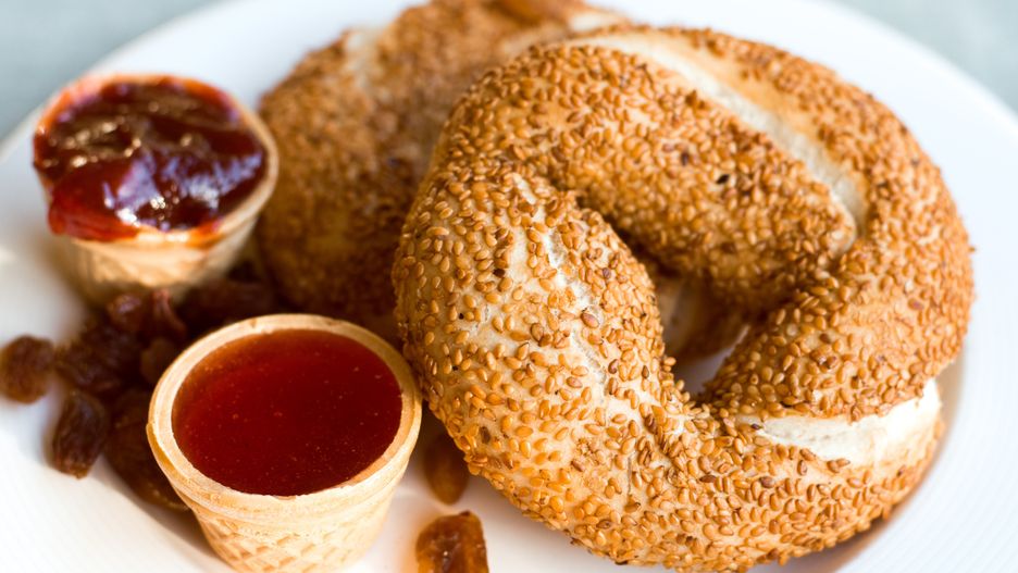 - Zanurz każdego koulouri w mieszance wody z melasą, a następnie obtocz go obficie w sezamie.