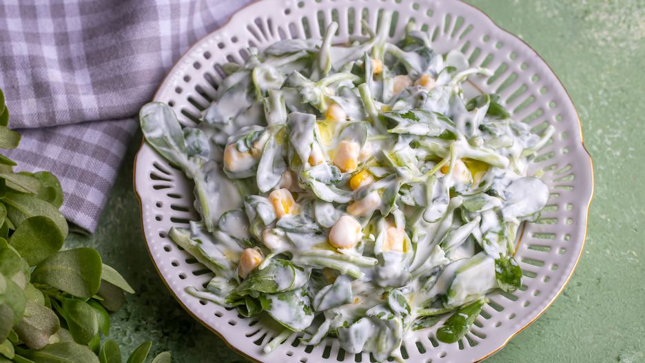 Czasem natknąć się można również na połączenie horty z nabiałem. Taka sałatka świetnie zastąpi smaczną, ale nieco już oklepaną mizerię.