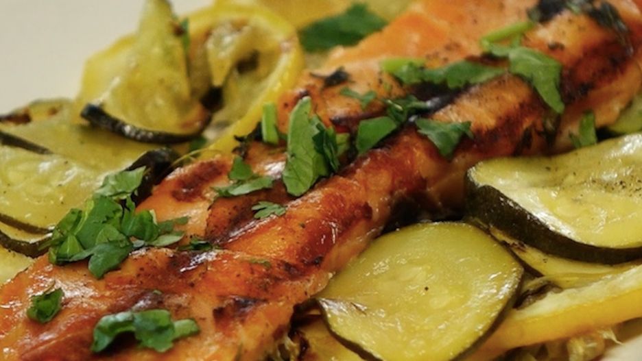 Grillowany łosoś z masłem, cytryną, cukinią i tymiankiem
