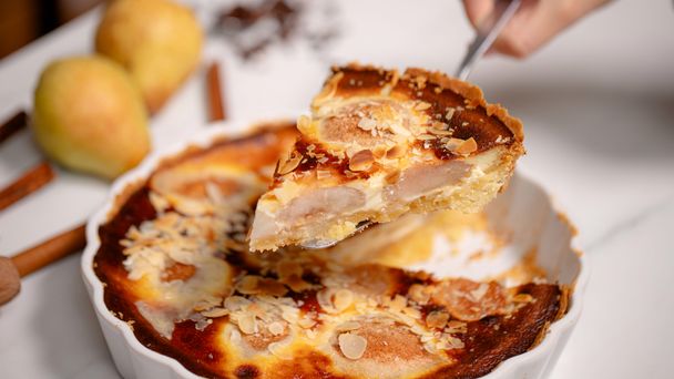 Szukasz pomysłu na ciekawy i smaczny deser? Postaw na połączenie, które nigdy nie zawodzi. Tarta z soczystymi gruszkami, delikatnym kremem i chrupiącymi migdałami ma w sobie "to coś". Już po jednym kęsie nie będziesz chciał jeść nic innego. Domowy wypiek stanie się ulubionym dodatkiem do południowej kawy. Lista składników czeka poniżej. Nie zapomnij też obejrzeć naszego wideo, gdzie pokazujemy krok po kroku, jak zrobić deser w zaciszu własnego domu.