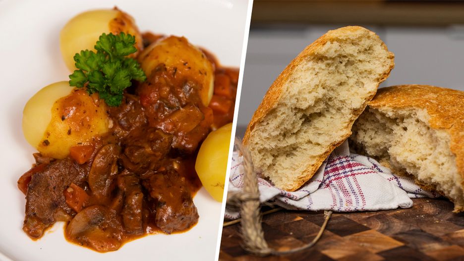 Gulasz z wołowiny i domowy chleb