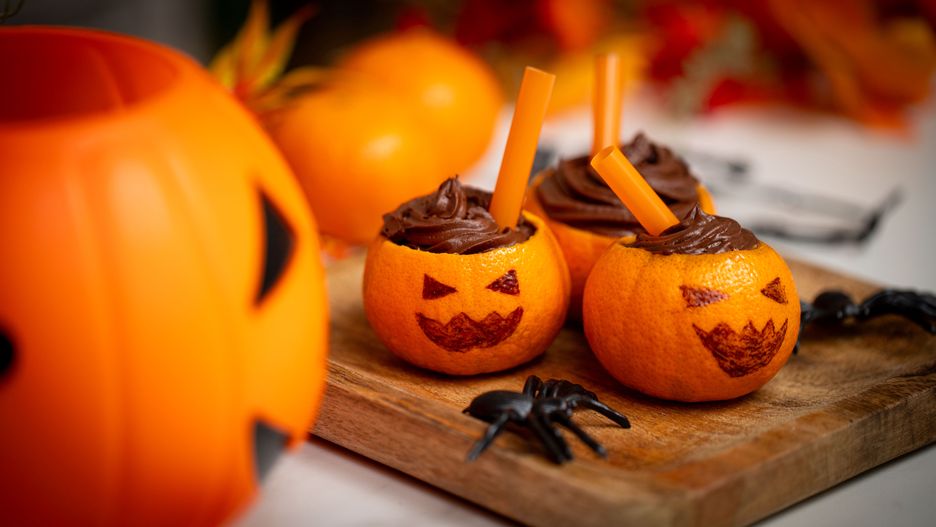 Ostatnie dni października to dla wielu osób czas zabawy i halloweenowych imprez. Za straszydła, czarownice i wampiry przebierają się zarówno dzieci, jak i dorośli. Organizując tematyczną imprezę, warto zadbać o odpowiednio dopasowane przekąski. U mnie w domu furorę robią mandarynkowe dynie z prostym musem na bazie gorzkiej czekolady i śmietanki.