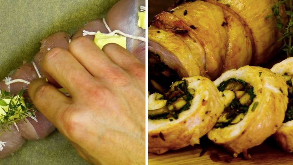 Indykowa roladka ze szpinakiem i grzybami