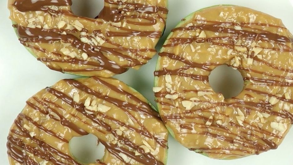 Poniżej zobaczysz przepis na przyrządzenie jabłkowych "ciasteczek" z karmelem, orzechami i czekoladą.