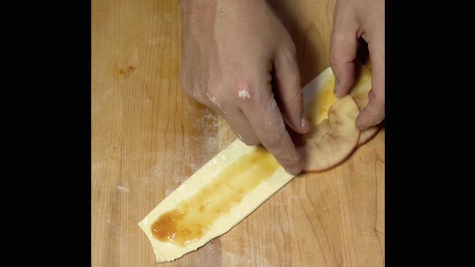Pokroił jabłko i położył na posmarowanym dżemem cieście francuskim. Musisz to zrobić w te Święta!