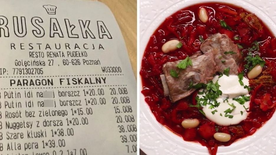 Jak barszcz ukraiński widnieje na paragonie restauracji Rusałka? Otóż jest opatrzony frazą "Putin idi nah**".