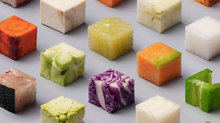 Zebrali 98 przeróżnych produktów żywnościowych i pokroili je na 98 równych sześcianów o wymiarach 2,5 cm x 2,5 cm x 2,5 cm. Przyznam, że efekt ich pracy wygląda wspaniale i jest to dosłownie kulinarny raj dla perfekcjonistów!