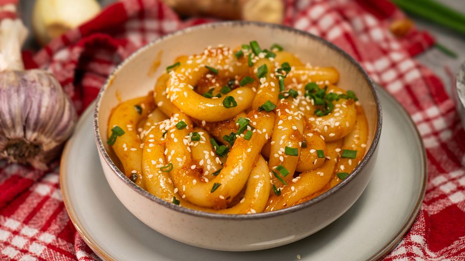 Te kluchy zaskakują swoją długością. Po spróbowaniu liczysz jednak na to, by nigdy się nie skończyły. Są sprężyste i otulone lepkim, lekko pikantnym sosem na bazie pasty gochujang. Wyglądają efektownie, ale ich przygotowanie nie jest skomplikowane. To hit, który podbił serca użytkowników mediów społecznościowych.