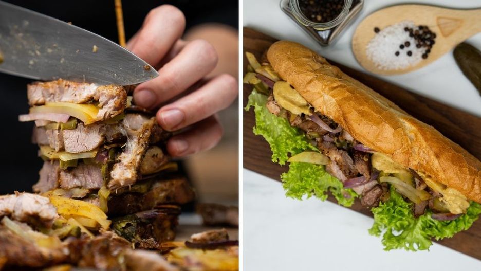 Wyjątkowa kanapka na bogato z soczystą karkówką i warzywami. Rarytas dla miłośników mięsa