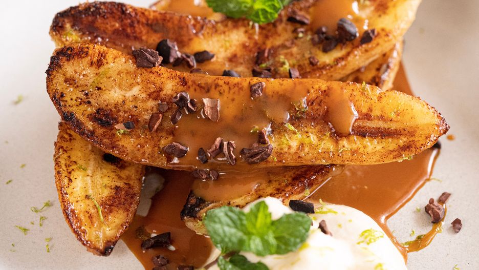 Banany należy obrać, przekroić wzdłuż na połówki i delikatnie podsmażyć na maśle z dodatkiem cukru i cynamonu, aż pokryją się złocistym karmelem. Pod wpływem temperatury owoce karmelizują, nabierając bogatszego, bardziej wyrazistego smaku, a po dodaniu do nich mięty, wiórków czekoladowych oraz ulubionych lodów stają się pysznym deserkiem. Najlepiej wybierać banany dojrzałe, ale wciąż jędrne, ponieważ zbyt miękkie mogą się rozpadać podczas smażenia. Pamiętaj, aby podczas krojenia i smażenia bananów zachować ostrożność, ponieważ owoce są dość delikatne i łatwo je uszkodzić, a wtedy nie będą prezentować się tak apetycznie, jak mogłyby.
