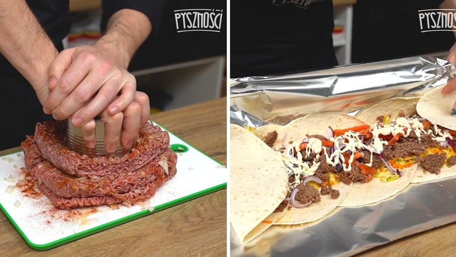Jak złożyć kebab w domu? Kiedy mięso jest już gotowe – czas przejść do składania kebabu w rozmiarze XXL. Na kuchennym blacie rozwiń sreberka i ułóż placki tortilli tak, żeby nachodziły na siebie. Ułóż na nich ulubioną surówkę, podsmażone mięso, pokrojone pomidory. Całość polej swoim ulubionym sosem.