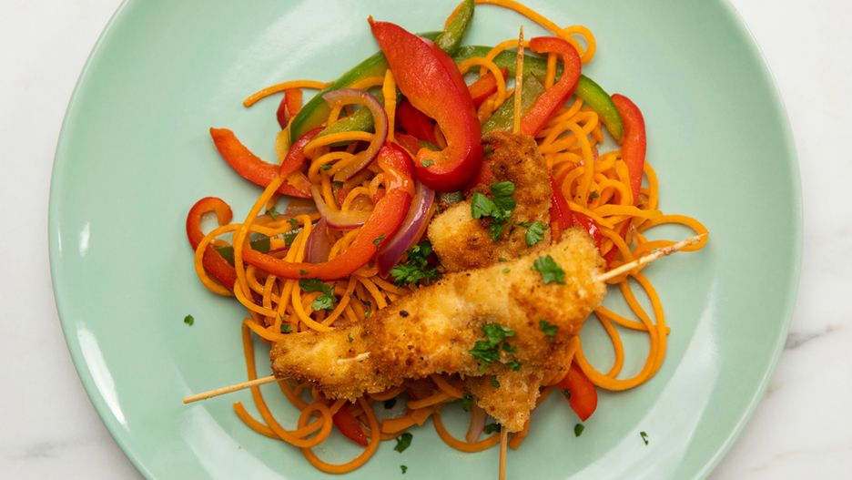 Kęski z kurczaka z batatami w formie makaronu to prawdziwy sztos. Kiedy raz skosztujesz pysznego dania, już na stałe wprowadzisz je do rodzinnego menu.