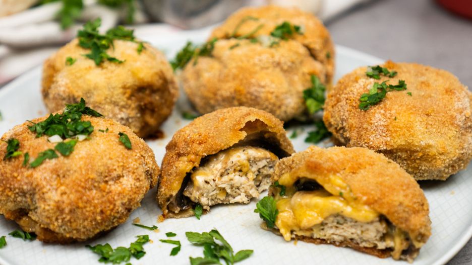 Co znajdziesz w opisywanej przekąsce oprócz kultowych pieczarek? Czeka tu na ciebie kurczak, żółty ser oraz cała masa aromatycznych przypraw. Co więcej, choć przekąski podasz w panierce na bazie bułki tartej, wcale nie musisz smażyć ich w głębokim oleju. Wystarczy krótka wizyta w piekarniku i gotowe!