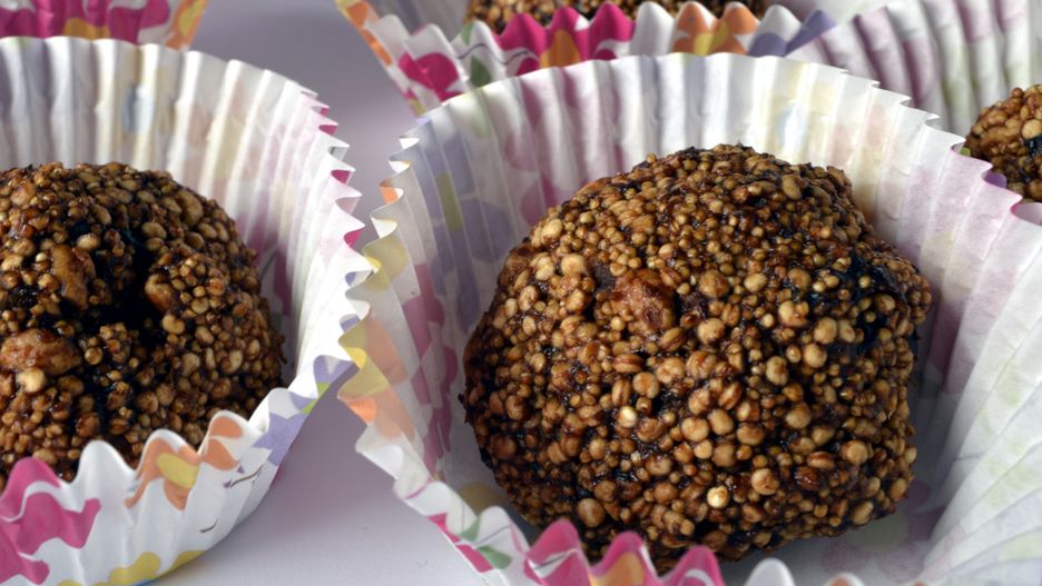Amarantuski to idealna alternatywa dla sklepowych słodyczy. Są bezglutenowe, bez cukru i mąki, a mimo to znikają w tempie ekspresowym. Kakao nadaje im lekko gorzkawy smak, jeśli wolisz słodsze wypieki, po prostu je pomiń albo zwiększ ilość banana. To również świetny sposób na przemycenie wartościowych składników do diety dziecka. Nie musisz też rezygnować ze słodyczy, bo te amarantuski spełniają wszelkie wymagania.
