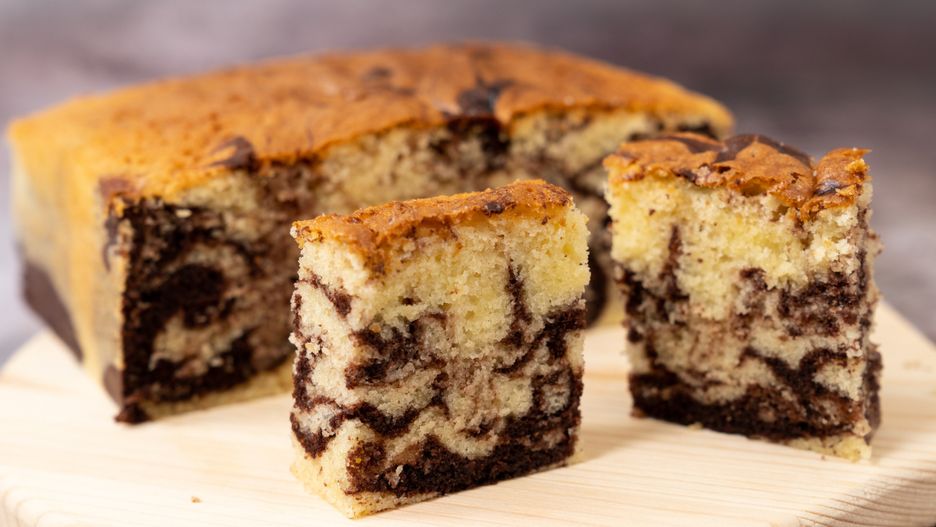 - Naczynie żaroodporne lub keksówkę smaruję masłem, a następnie na przemian nakładam warstwy ciasta jasnego i ciemnego. Czasami wykonuję też dekoracyjny wzorek na powierzchni ciasta za pomocą wykałaczki.