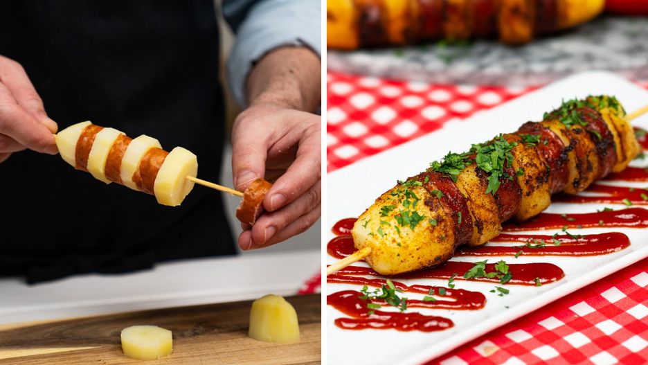 Na żadnym grillu nie może zabraknąć kiełbaskowych szaszłyków z dodatkiem ziemniaków. Zawsze robią furorę