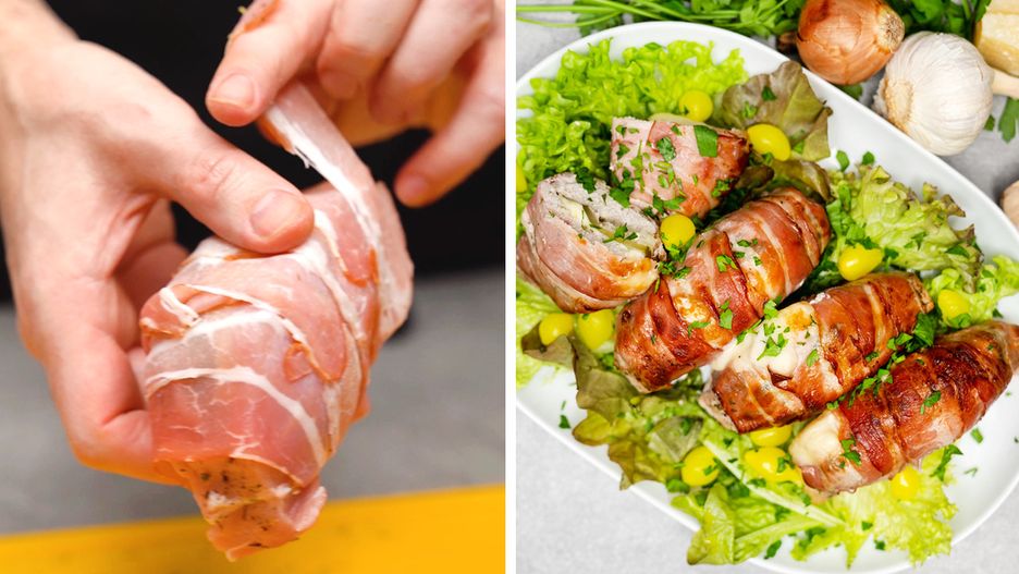 Kieszonki schabowe w boczku z prostym i pysznym nadzieniem