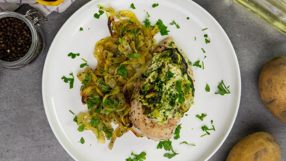 Kieszonki z kurczaka ze szpinakowym farszem i ziemniakami