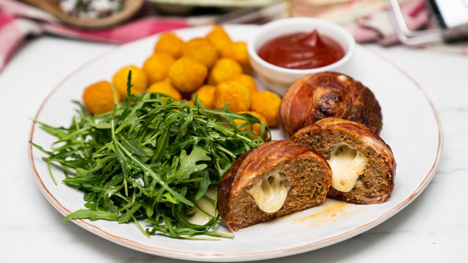 Klopsy z indyka otulone boczkiem skrywają w sobie apetyczny, ciągnący się ser będą pyszną alternatywą dla klasycznych kotletów mielonych.