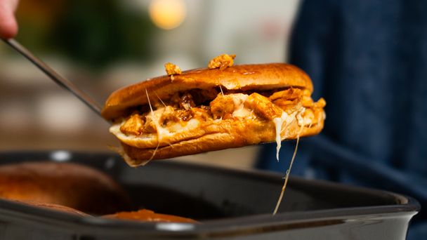 Nie masz pomysłu na rozgrzewającą i smaczną kolację dla swojej rodziny? Wykorzystaj nasz sprawdzony przepis na maślane bułki wypełnione pysznym farszem na bazie kurczaka. Aby mięso wyszło idealnie soczyste, koniecznie wypróbuj patent z bulionem. Oczywiście w przepisie nie zabraknie ciągnącego się sera i solidnej porcji sosu. Lista składników czeka poniżej. Natomiast dokładną instrukcję znajdziesz w naszym wideo.