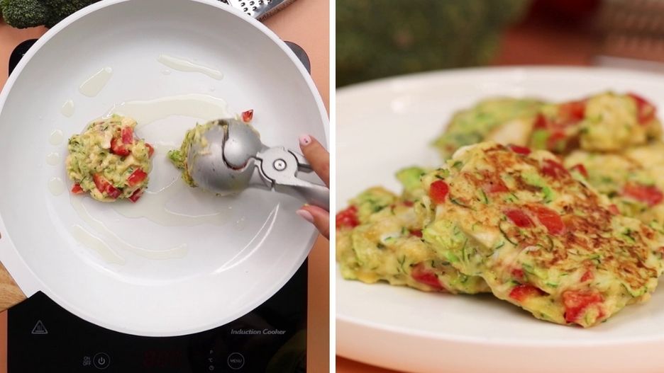 Możesz zrobić to przy pomocy łyżki do lodów, zwykłej łyżki lub za pomocą rąk. Wybierz taką metodę, która będzie najlepiej Ci odpowiadać. Następnie przygotuj patelnię. Ustaw ją na palniku i podgrzej olej. Kiedy będzie miał już odpowiednią temperaturę, dodaj na patelnię kolorowe kotleciki.