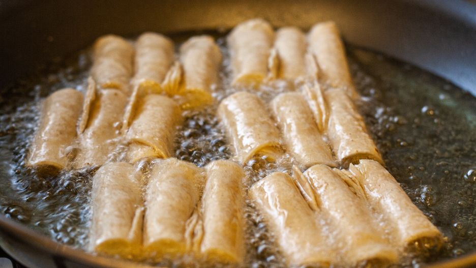 - Smażenie: W głębokim rondlu rozgrzej olej do temperatury ok. 180°C. Smaż flautas partiami, obracając je delikatnie, aż osiągną złocistobrązowy kolor z każdej strony. Po usmażeniu przełóż na ręcznik papierowy, aby pozbyć się nadmiaru tłuszczu.