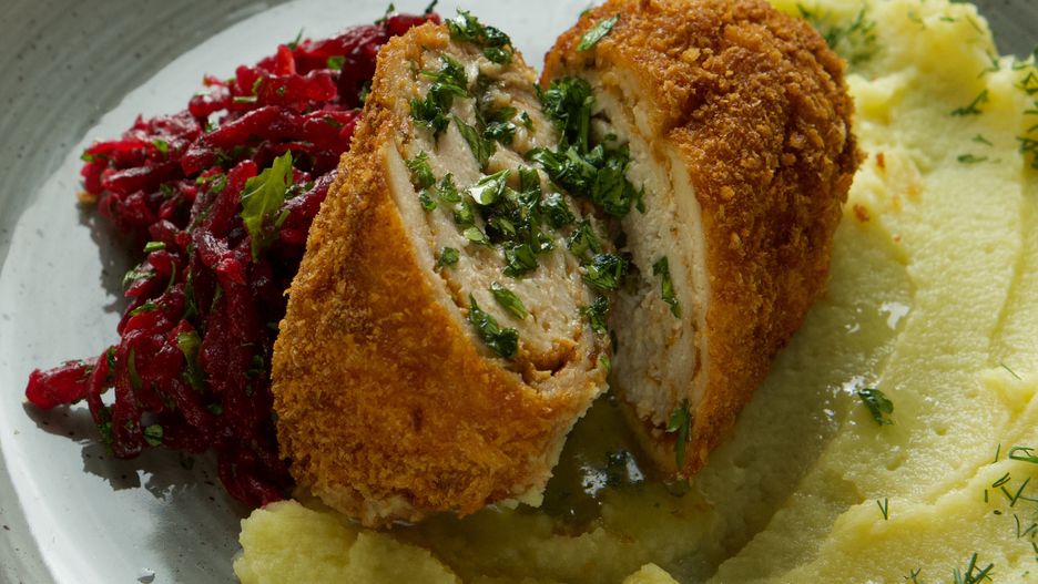 To danie kojarzy się z kuchnią PRL-u, wtedy te kotlety uchodziły za wykwintne. Prezentują się elegancko na talerzu, dlatego do dziś często podawane są na uroczystościach rodzinnych. Prawdziwy kunszt ujawnia się po ich przekrojeniu, gdy wypływa roztopione masło - ten pyszny sosik dodaje soczystości mięsu drobiowemu. W połączeniu z aromatycznymi ziołami kompozycja smakowa jest wybitna. O tej porze roku najlepiej wykorzystać natkę pietruszki, koperek lub bazylię czy trybulę. Pysznie smakuje także mieszanka ziołowa.