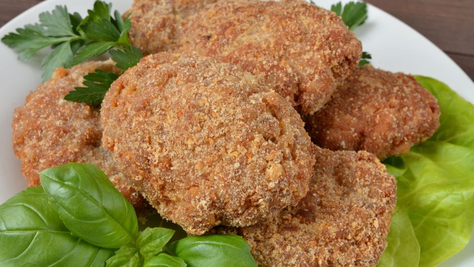 - Formowanie kotletów: z powstałej masy formuj kotlety, obtaczaj je w bułce tartej.