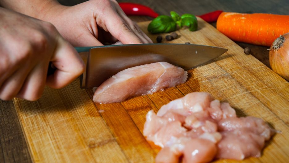 Kroję kurczaka i wrzucam do garnka. Dodaję kilka składników i mam pyszne danie