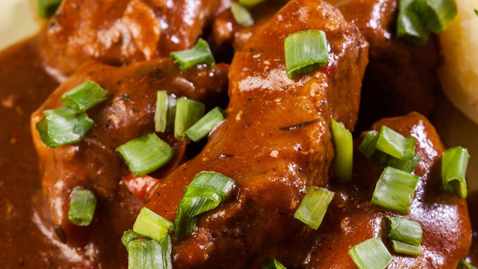 - Duś na małym ogniu pod lekko uchyloną pokrywką przez około 2 godziny, aż mięso stanie się miękkie.