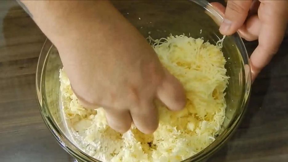 Wrzuciła 500 g sera do miski i wymieszała z jajkiem i mąką. Potem tylko dodała na rozgrzany tłuszcz