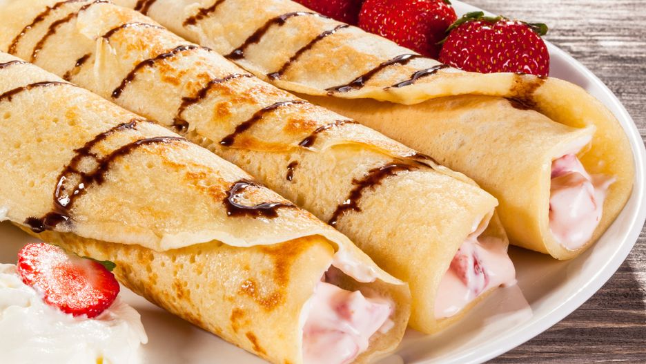 - Kiedy składniki połączą się, posmaruj nimi naleśniki cienką warstwą i zawiń je w rulony lub złóż w kopertę bądź trójkąty.