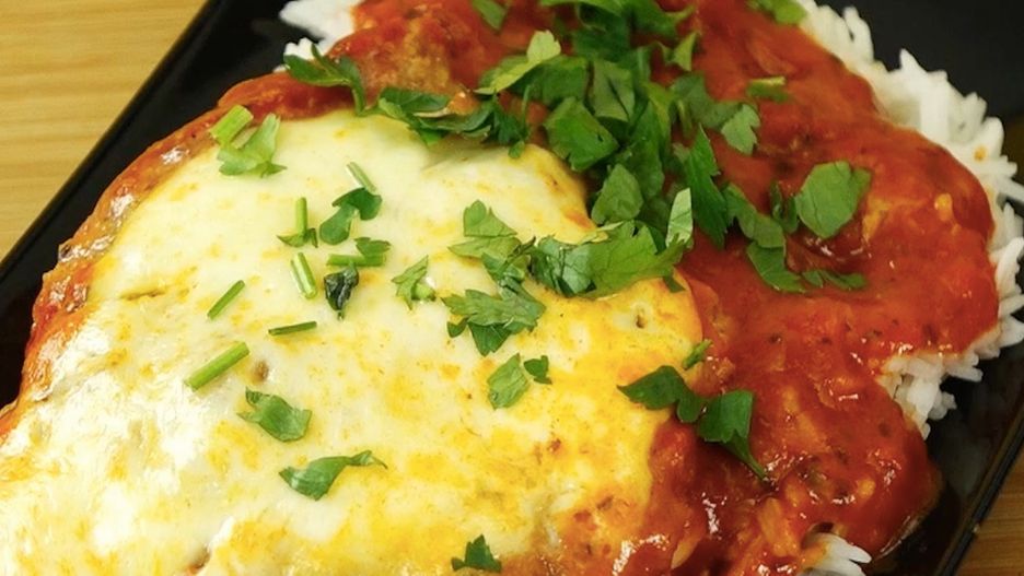 Poniżej zobaczysz przepis na przyrządzenie kurczaka w sosie pomidorowym z bazylią, parmezanem i mozzarellą.