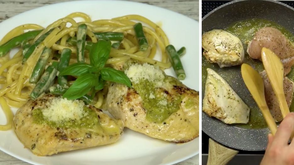 Kurczak z makaronem na zielono