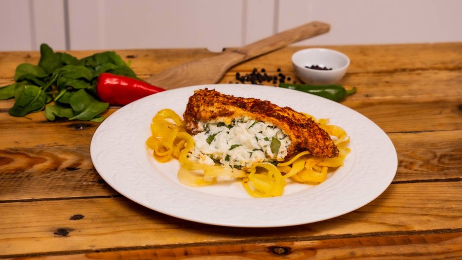 Kurczak ze szpinakiem na zoodlowanych ziemniakach