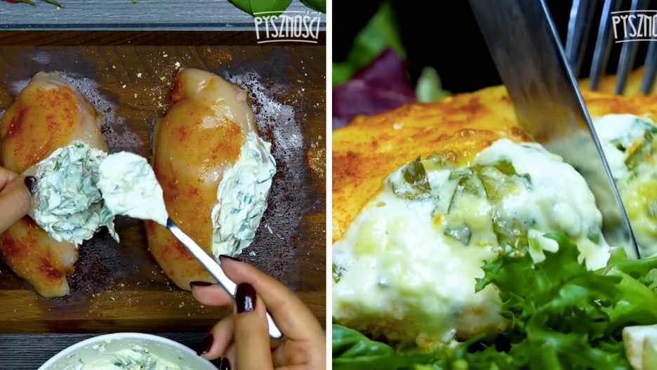 Kurczakowa kieszonka ze szpinakowo-serowym farszem
