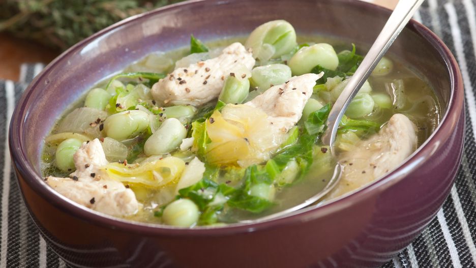 - Koperek, natkę pietruszki oraz rungię drobno posiekaj i dodaj do bulionu razem z bobem. Dodatek grzybowego zioła jest opcjonalny, natomiast warto go użyć. Wprowadza do dania wyjątkową świeżość i przełamuje cięższe nuty mięsa oraz bobu.